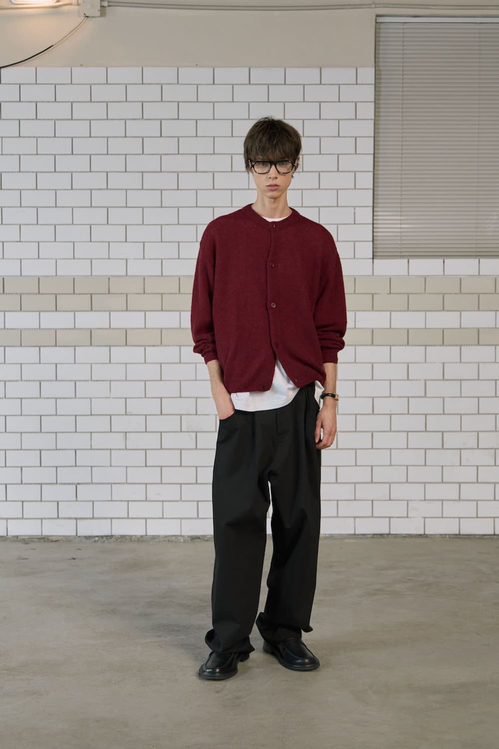 (1) 웨이비니스 23ss 스카시 하프 카라 니트 가디건
