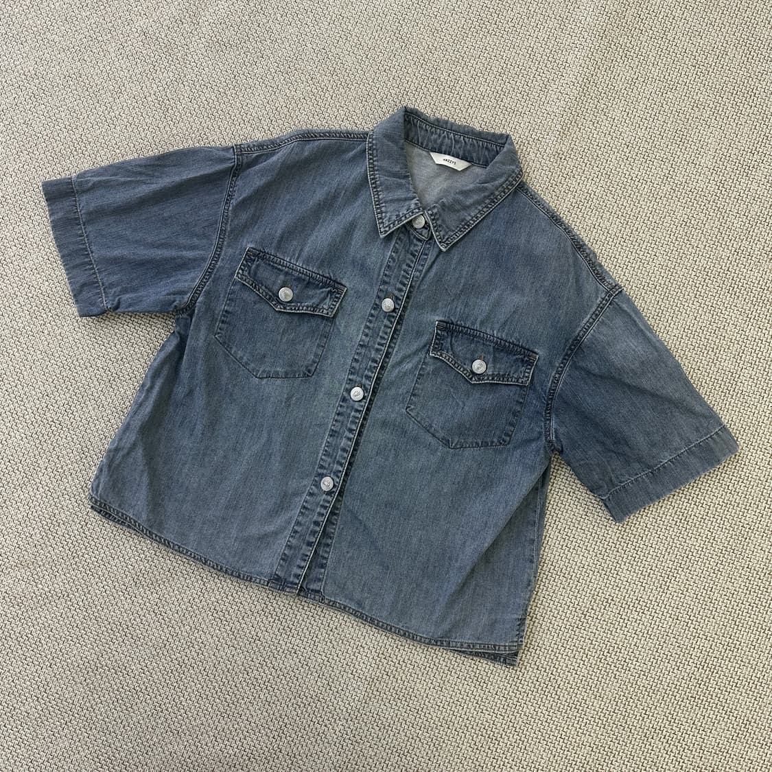 • 95-165 헤지스 루즈핏 반팔 데님 셔츠 0416D