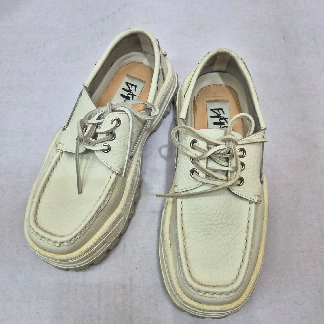 Eytys 이티스 미코노스 레더 화이트 ​소재는 천연 소가죽 이며 ​표기 사이즈는 EUR 41 국내 약 265~270 추천 드립니다. (라벨 기준 26.8cm) ​ ​클래식한 보트 슈즈 상단에 이티스만의 두툼한 플랫폼 솔이 결합되어 독보적인 실루엣을 보여줍니다. 와이드 팬츠나 데님 어디에나 매치가 정말 좋습니다. ​#이티스 #Eytys #미코노스 - 실측사이즈는 cm 기준이며 측정 방법에 따라 1~3cm 사이즈 오차가 있을 수 있습니다. - 꼼꼼하게 하자 체크 후 미리 알려 드리지만 간혹 작은 이염이 있을 수 있으니 그점 양해 부탁드립니다. - 구제 특성상 교환/환불 불가하오니 신중히 구매 부탁 드립니다.