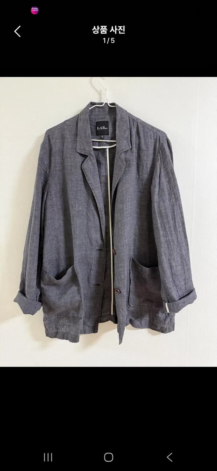 사이즈M 가슴반품50 길이73 얇은 마 소재라 지금 입기 좋아요 거의 새 옷 청색이 섞인 그레이