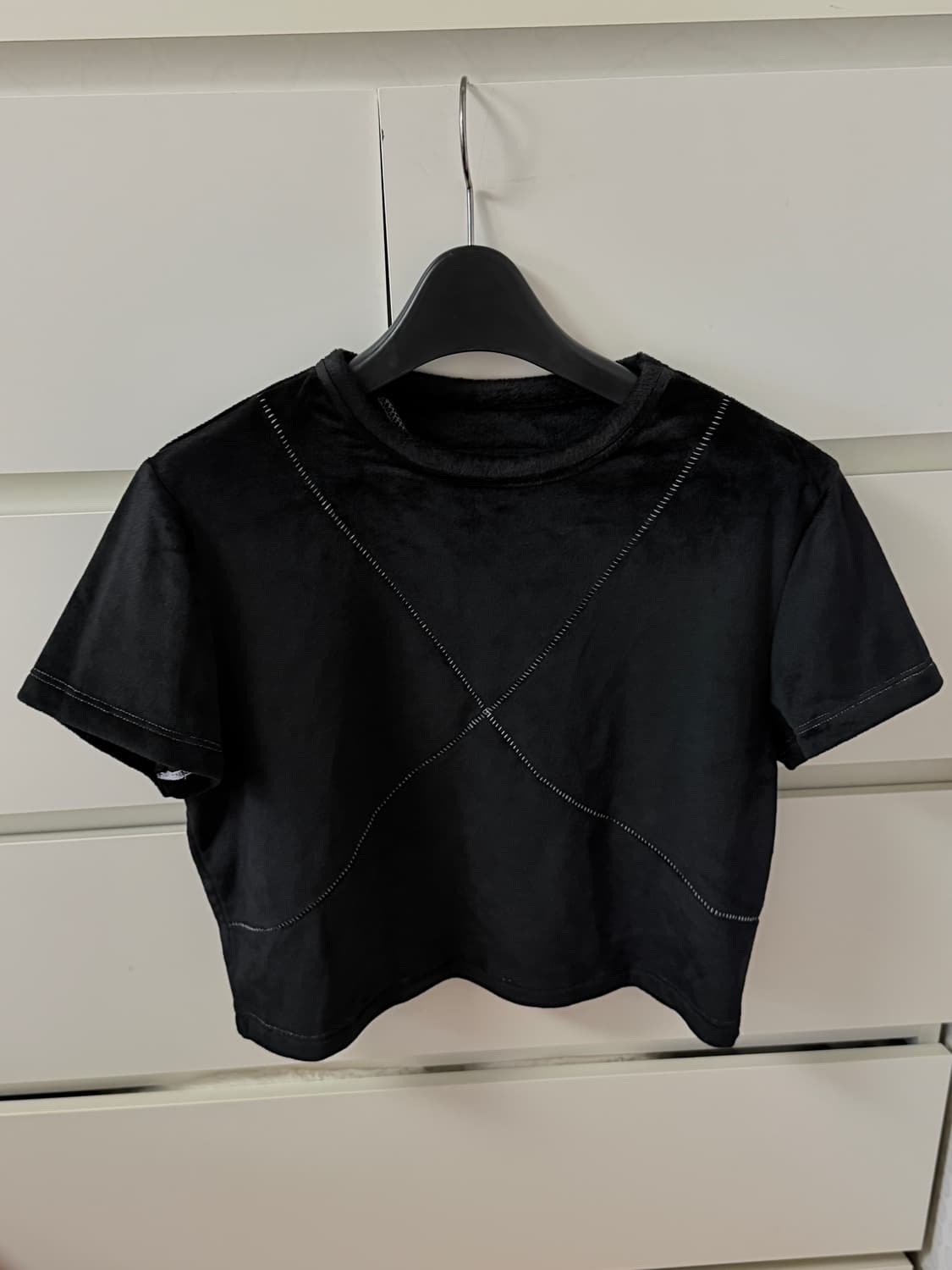 마뗑킴 벨벳소재 크롭 반팔