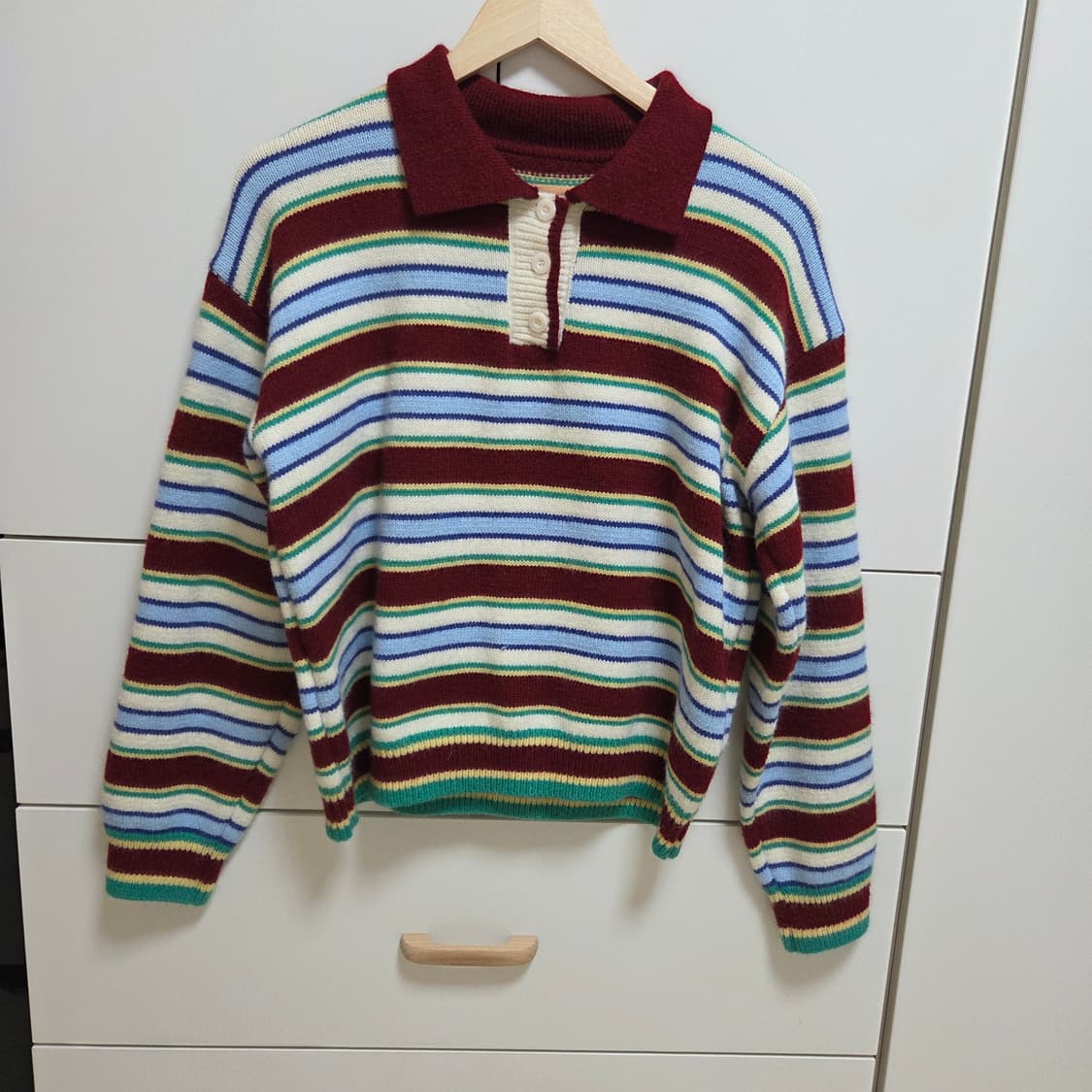 3만5천 구매 매장에서 시착만 해봄 카라부분이랑 스트라이프부분 버건디색 총장 약56 가슴단면 약53센티
