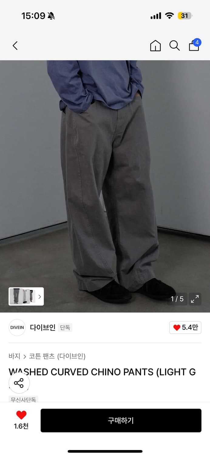 다이브인 베른카고팬츠 2 올리브 1회착 판매