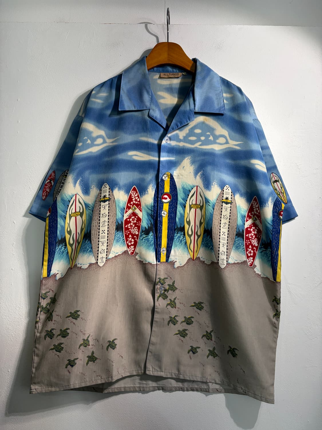 만원샵) 서핑 빈티지 반팔 셔츠 C269 -Price : 35,000 표기사이즈 : L 실측(cm) 어깨 50 가슴 59 소매 26 총장 75 컨디선 : 10/8 (전면에 넥부근,전후면 팔 부분,후면 등부분 에 오염있습니다. )