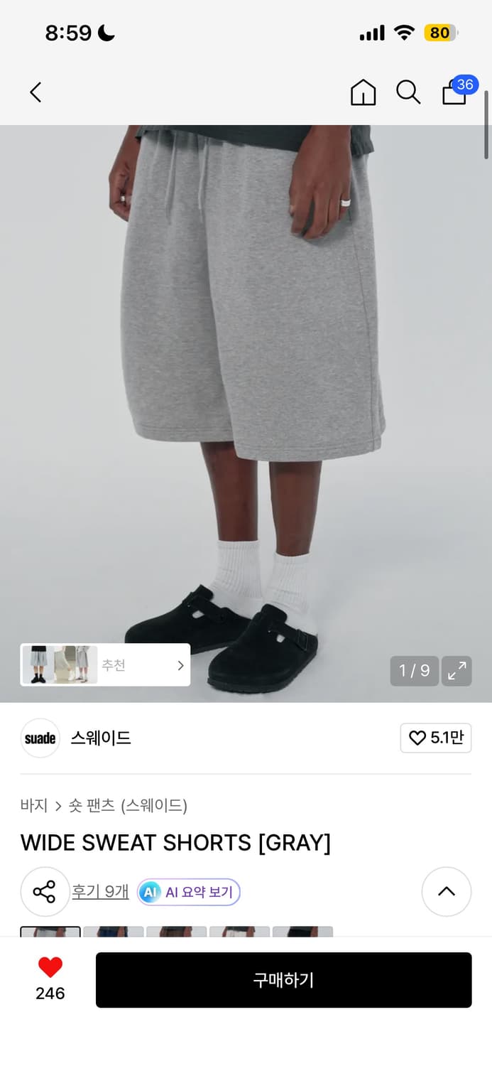 9999아카이브 더블니 버뮤다팬츠 워시드차콜 1사이즈