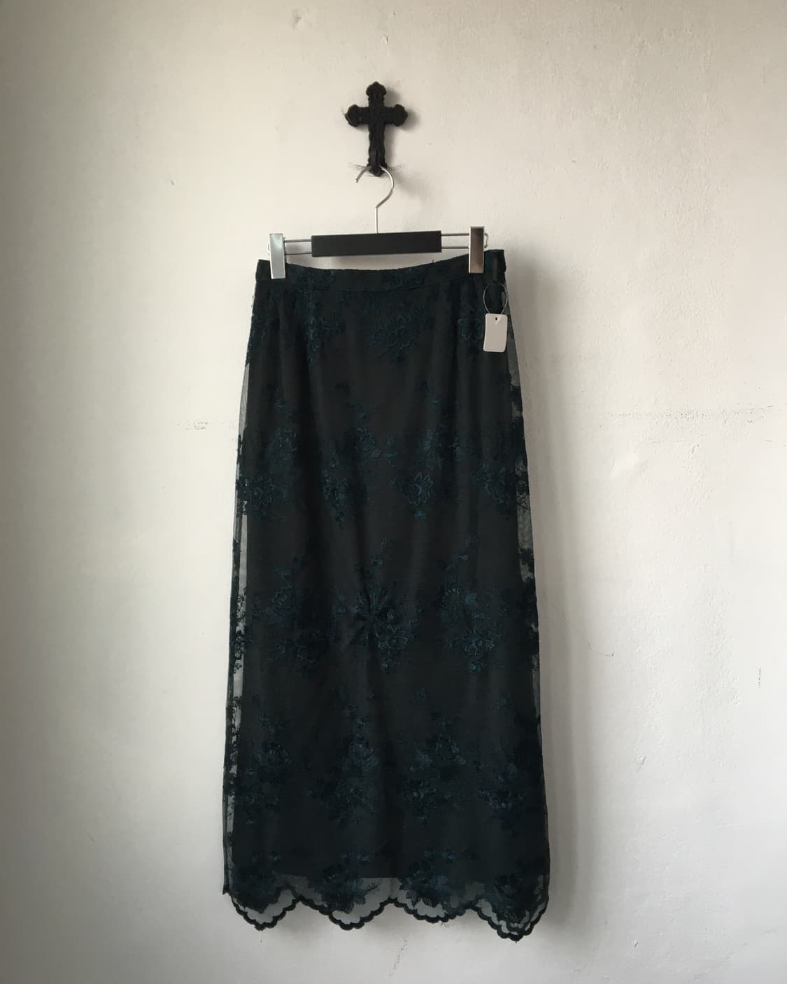 카키 캉캉 레이스 모리걸 코튼 미디 스커트 JPN