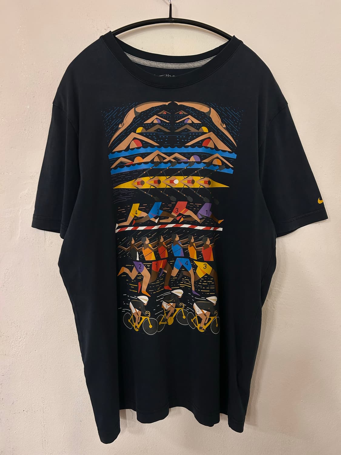 나이키 그래픽 반팔 티셔츠입니다. 사이즈는 XL로 넉넉하게 착용하기 좋습니다. 네이비 색상 약간의 물빠짐있으나 크지 않아요. 캐주얼한 그래픽 디자인으로 데일리룩에 활용하기 좋은 아이템입니다. 앞면에 보이는 흰 선 자국은 스팀으로 인해 생긴 자국으로 세탁 시 사라집니다. 큰 하자 없이 전체적으로 상태 양호합니다. 가슴너비 55 총장 70 ※ 제품 특성상 교환 및 환불은 불가하오니 구매 전 충분한 확인 부탁드립니다. 배송비 안내 반값택배 2,000원 일반택배 4,000원