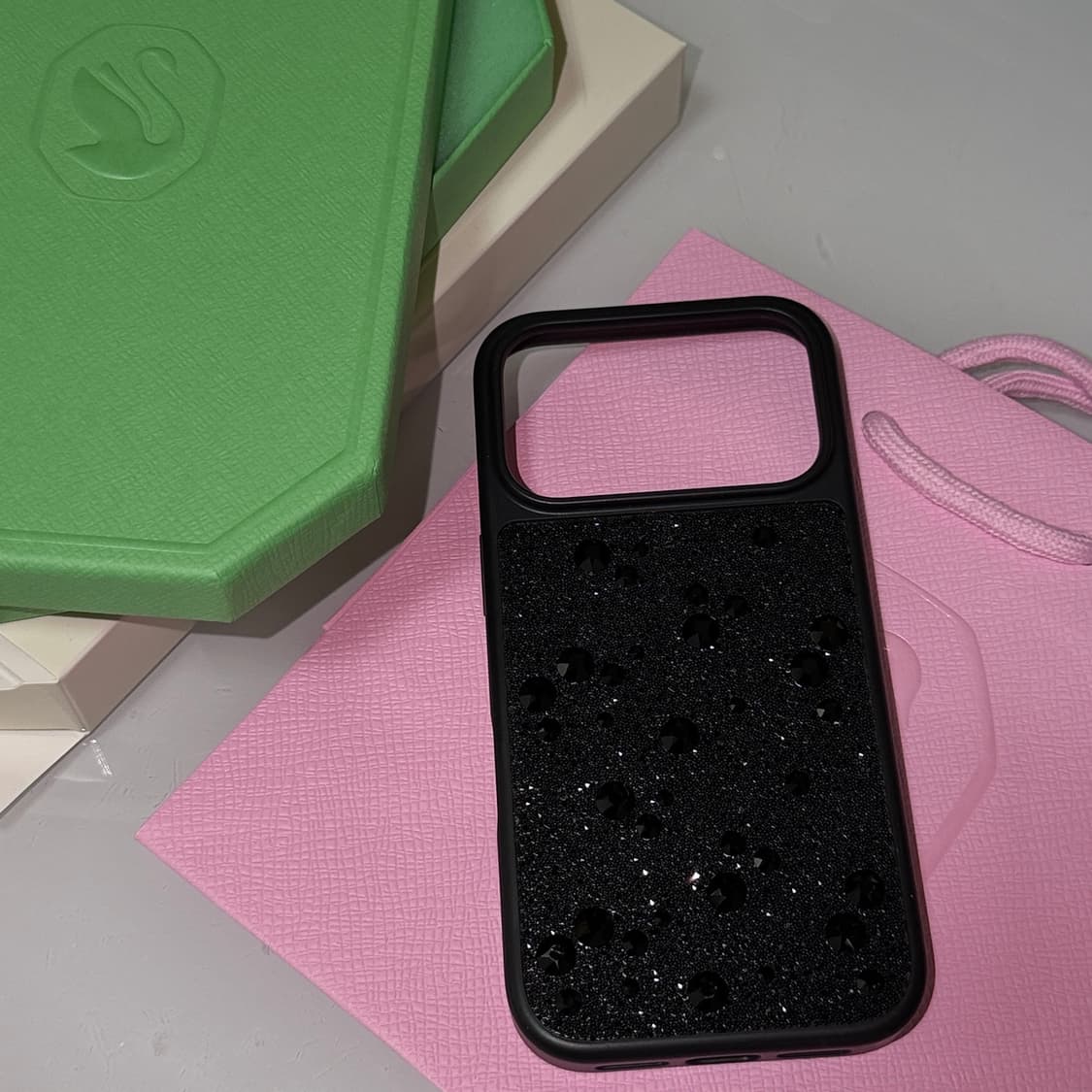 아이폰 17pro 스와로브스키 정품 케이스입니다. 사용은 했으나 메인으로 쓰던 게 아니라서 눈에 띌만한 하자는 없습니다. 그래도 플랫백 스톤 특성상 뛰어나와있기 때문에 어디에 둘 때 닿은 부분들이 있어서 뒷장에 사진 첨부해 두었습니다. 케이스와 쇼핑백, 정품 보증서 풀세트로 드립니다. 문의 없으시면 바로 안전결제해주시면 됩니다. 쿨거시 네고해 드려요! 일반택배로만 배송하고 택배비 포함 가격입니다.