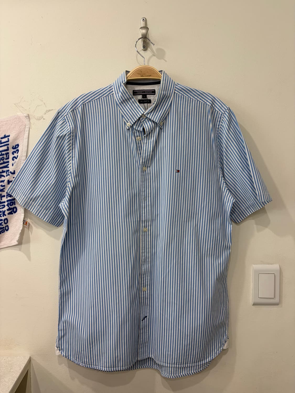 타미힐피거 스트라이프 트림핏 반팔 셔츠 L