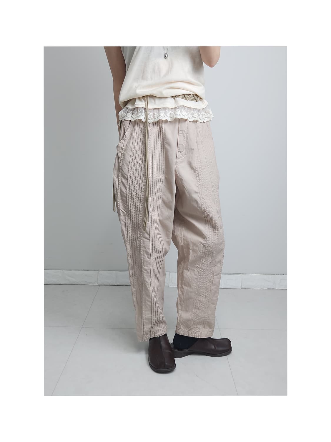 ✸허리(뒷밴딩) 31~38 밑위 32 총장 89 ✸yaccomaricard 사 핀턱 배기 팬츠(소프트한 핑크베이지) ✸겹겹이 레이어 된 주름 포인트 ✸기재사이즈 1 ✸하단 작은 사이즈의 변색 같은 물빠짐 O ✸면 100 ✸157cm / 44~55 🍀notice🍀 ✸교환•환불•구매 후 취소가 어려우니 신중한 구매 부탁드립니다. ✸빈티지 특성 상 사용감•미처 발견하지 못한 미세 이염 등이 있을 수 있습니다. ✸재는 방식에 따라 1~3cm 오차 발생할 수 있으며, 이미지 색상 차이가 있을 수 있습니다.