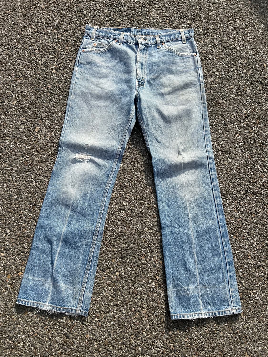 517을 디깅하다보면 가끔씩 풀을 먹인개체를 볼 수 있습니다. 빳빳하게 만들어 부츠컷을 더 선명하게 하기위함인데 보통 풀먹인개체들이 하단에 저런 일자로 워싱이 생깁니다. 빳빳한 풀기가 많이 남아있는 컨디션으로 다시 풀을 먹일게 아니라면 세탁을 추천드리지않습니다. 라벨컷팅되있지않아 정확한 연식확인불가하지만 라벨위치나 지퍼, 탑버튼 넘버로 80년대 개체로 유추됩니다. 보시는거와 같이 굉장히 스근한개체로 아무나사세요😂 표기 36/32 수축,수선없는 나이스 컨디션입니다. Size허리45밑위31허벅지31총장108밑단24