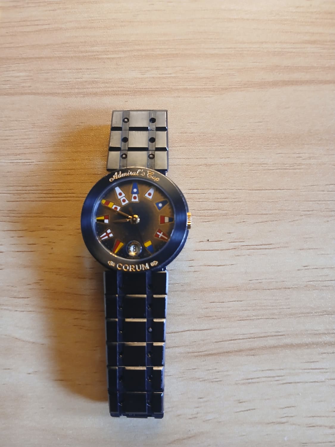 Corum Admiral’s Cup 시계 판매합니다 ✔ 브랜드: CORUM (코럼) ✔ 모델: Admiral’s Cup (어드미럴 컵) ✔ 무브먼트: 쿼츠 ✔상태:정상작동.베젤및버클에부속이없어서싸게팝니다. ✔ 기능: 시간 + 날짜 표시 ✔ 케이스/밴드: 메탈 브레이슬릿 ✔ 구성: 시계 단품 (마지막비교사진참고 베젤.버클줄)