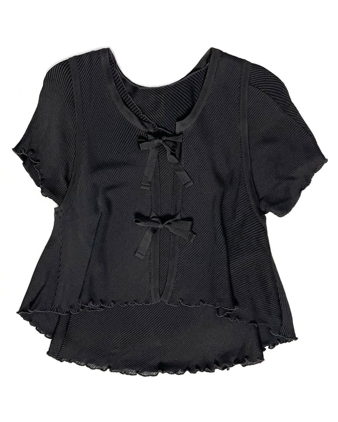 DESCRIPTION -레이어드 셋업 -진한 브라운 컬러 -촘촘한 사선 골지 -더블 리본 타이 MATERIALS -Rayon 100% SIZE(cm) -Top : 가슴 39 총장 57 -Vest : 어깨 31.5 가슴 43 총장 5