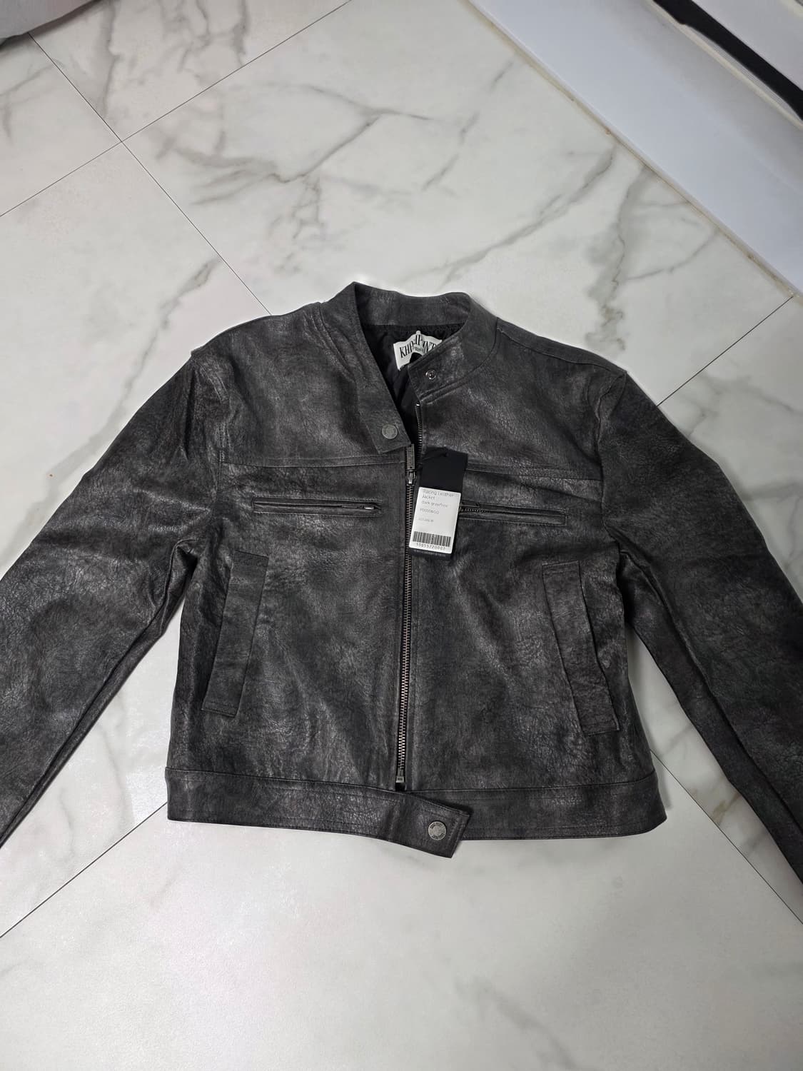 KHNP 가죽 자켓입니다. 빈티지 워싱이 들어간 다크그레이 컬러로 유니크하면서도 고급스러운 무드의 제품입니다. Condition: Like New (with tag) Material: Leather Color: Dark Grey 스트릿/미니멀 스타일 모두 잘 어울립니다.