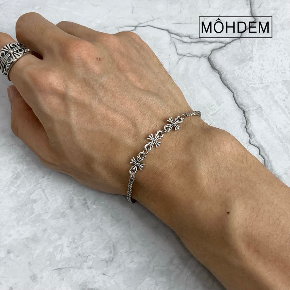 • [Unisex] 크로스3 실버 크롬 체인팔찌