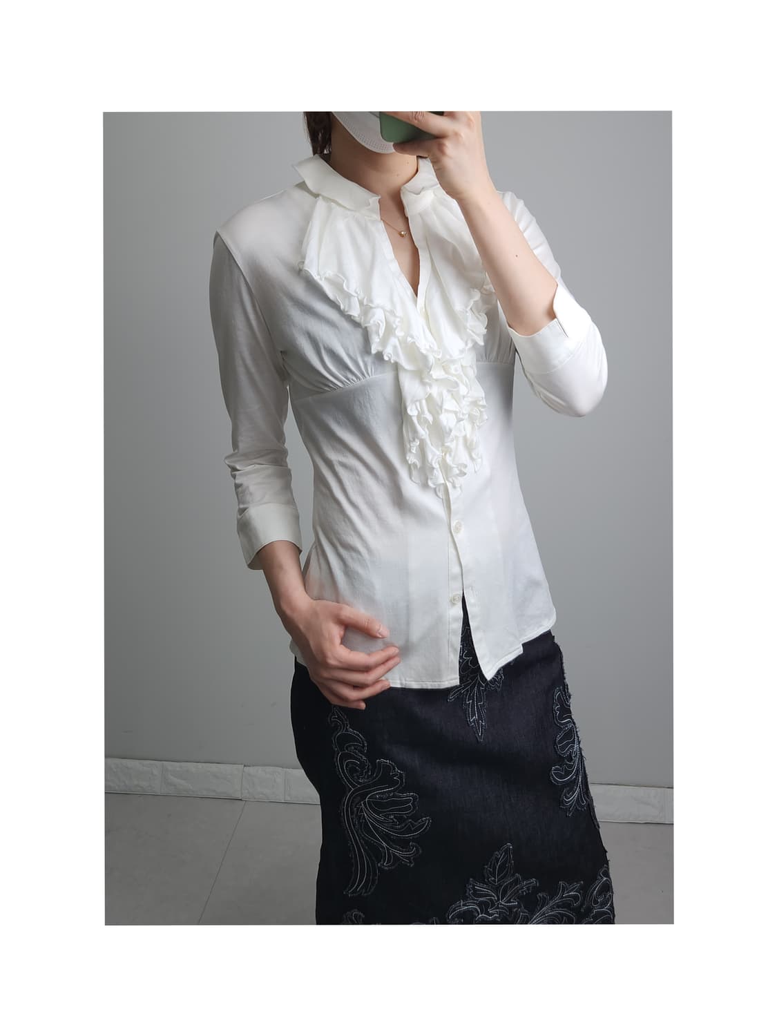 ✸어깨 37 가슴 39 총장 59 ✸프릴 롱 슬리브 탑 ✸가슴 쪽 셔링도 들어가있어 피팅 시 쉐입 예뻐요! ✸미세 콕이염 ✸기재사이즈 38 ✸레이온 55 면 45 ✸157cm / 44~55 🍀notice🍀 ✸교환•환불•구매 후 취소가 어려우니 신중한 구매 부탁드립니다. ✸빈티지 특성 상 사용감•미처 발견하지 못한 미세 이염 등이 있을 수 있습니다. ✸재는 방식에 따라 1~3cm 오차 발생할 수 있으며, 이미지 색상 차이가 있을 수 있습니다.