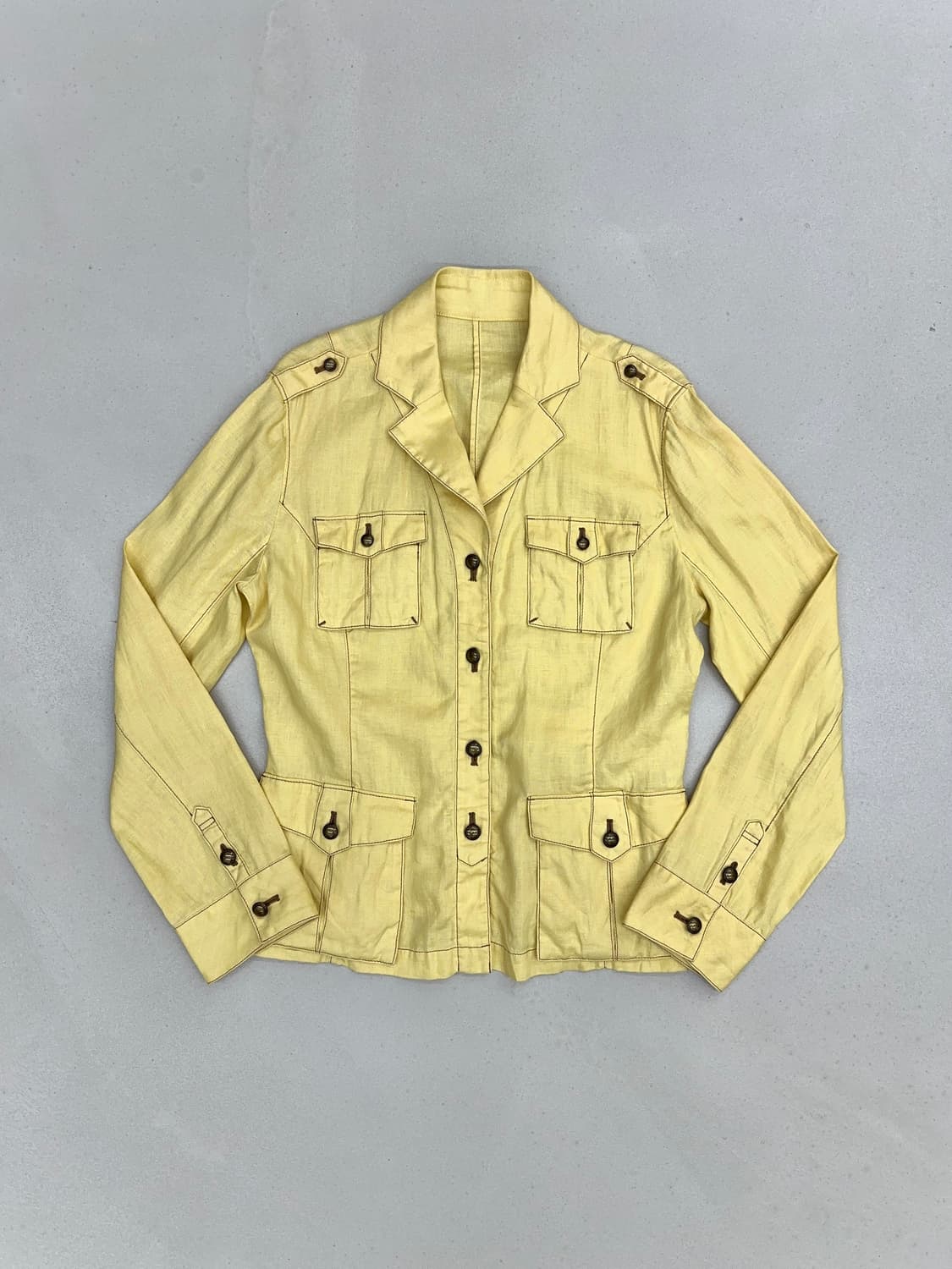 어깨41 가슴47 팔60 총장56.5(cm) CARA CRUZ 린넨 자켓 입니다. 100% 린넨 소재로 제작 되었으며 스티치 라인, 컬러감 등이 돋보이는 제품이네요. 사이즈는 실측을 참고해 주세요!