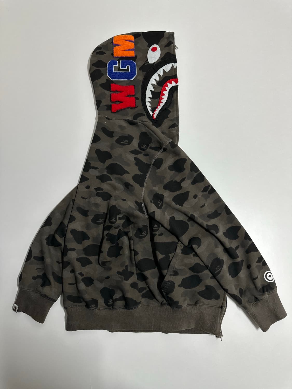 베이프 샤크 후드집업 흑카모 XL 사이즈예요 독특한 샤크 디자인으로 포인트를 줄 수 있는 매력적인 후드집업이랍니다 개성있는 스타일을 연출하고 싶으신 분들께 추천드려요 - 총길이 71 / 가슴단면 61 / 어깨 53 / 팔길 64 - 사이즈 표기는 실측시이즈입니다. - 사이즈 미스로 인한 교환환불은 불가능해요 - 중고거래 특성상 환불이 안되는 점 양해 부탁드립니다