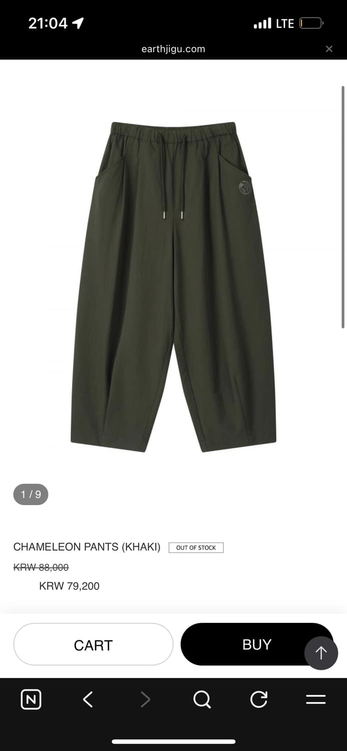 구해요) earthjigu 카멜레온 팬츠 카키