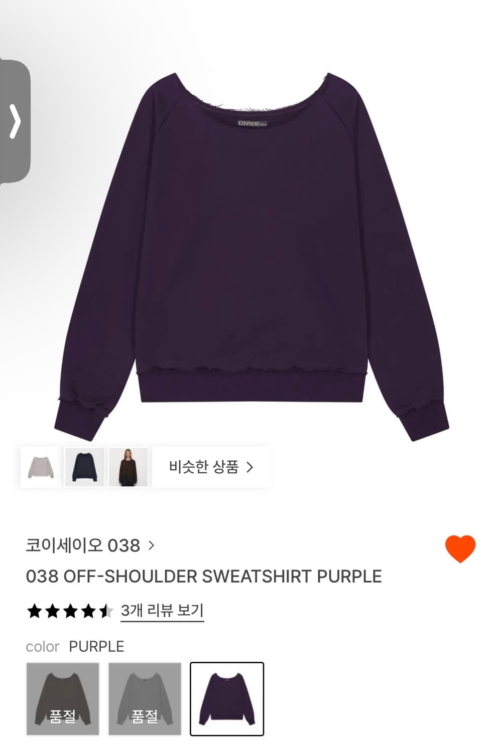 코이세이오038 오프숄더 스웻셔츠