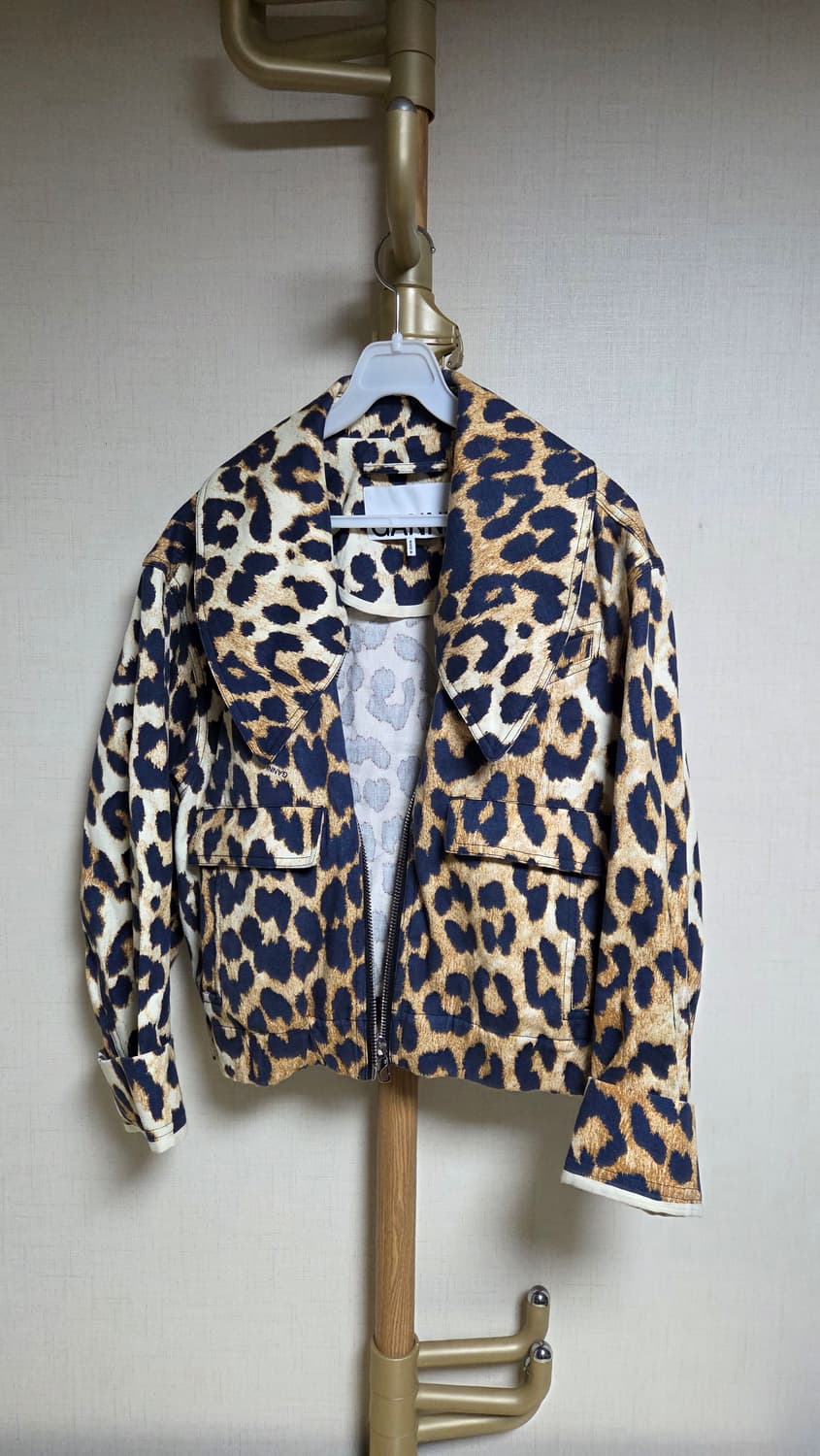 GANNI 레오파드 자켓입니다. 독특한 레오파드 패턴이 돋보이는 제품입니다. 무난한 상의에 포인트를 주기 좋은 아우터입니다. 기장도 크롭해서 스타일 연출하기 좋습니다. 사이즈 36입니다. 총장 54 가슴 50 반값택배, 일반택배 모두 가능합니다. (택배비는 물건의 무게, 배송 지역에 따라 추가 발생할 수 있습니다. 참고해주세요)