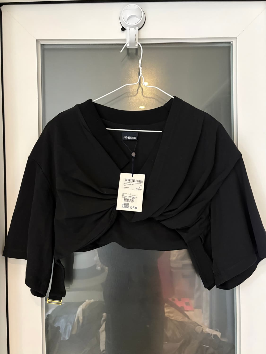택 달린 자크뮈스 블랙 크롭탑입니다. 독특한 꼬임 디자인이 매력적인 제품입니다. 지금보니 웨이스트에 버클 디테일도 있네요! 입지는 않았는데 보관한지 오래돼서 사용감이라기보다는 약간 세월감은 있네요 사이즈는 M이고, 스타일 변화로 판매합니다. 문의 없으시면 바로 안전결제해주시면 됩니다!