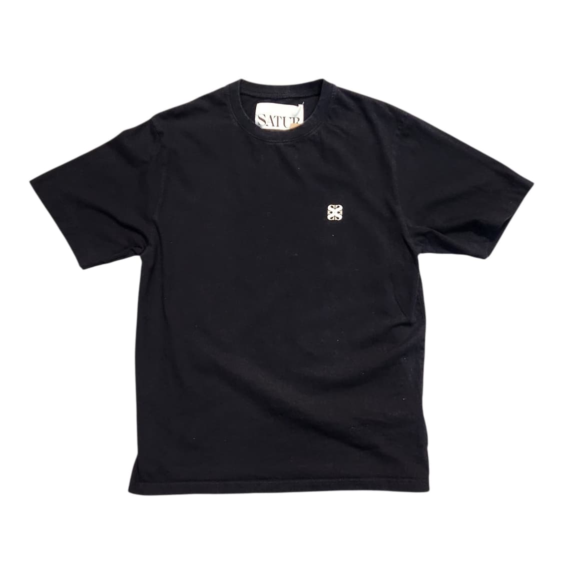 택 달린 새상품 SATUR 블랙 반팔 티셔츠입니다. 가슴팍에 은색 로고가 포인트로 들어가 있습니다. 무난한 디자인이라 어떤 코디에도 잘 어울립니다. 별도 문의 없으시면 바로 안전결제 부탁드려요! SATUR 로고 블랙 반팔티 사이즈:L 가슴:52cm 총장:66.5cm