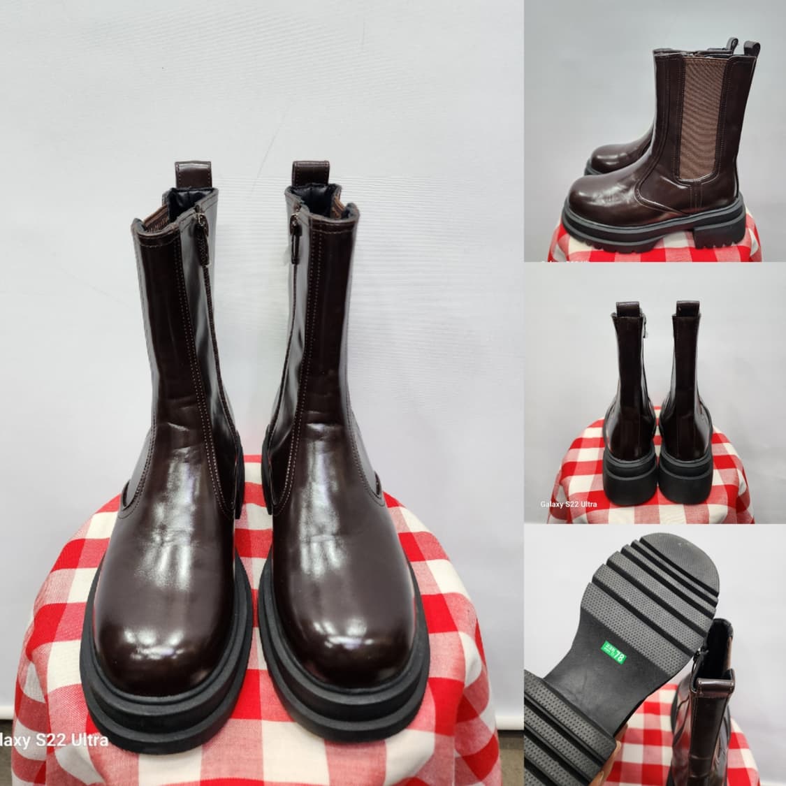 매력적인 브라운 컬러의 첼시 부츠예요 지퍼와 엘라스틱 밴딩으로 신고 벗기 편해요 두꺼운 굽으로 키높이 효과도 있답니다 데일리룩에 포인트를 주고 싶은 분들께 추천드려요