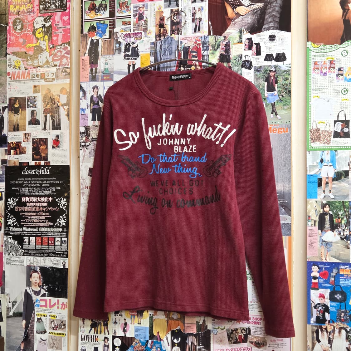 JPN 펑크 와플 자수 롱슬리브 . -일본 빈티지 와플 롱슬리브 입니다. 펑키한 프린팅과 레터링 포인트가 들어간 제품으로 슬림한 핏감의 롱슬리브 입니다! . Size : 표기M 실측 사이즈 여성 S-M . -단면 실측(CM)- 어깨: 42 가슴: 45 총장: 63 암홀: 22 팔길이: 59 . Condition :9 /10 . Price : 2.9 . * 실제와 약간의 색상 차이는 있을 수 있습니다. * 정면 상품샷이 실제 색상과 가장 동일합니다. * 실측 단면은 CM단위이며 2~3cm의 오차가 날수있습니다. * 표기 사이즈와 실사이즈의 차이가 있을 수 있으니 실측 단면 꼭 참고 부탁드립니다. *빈티지 특성 상 발견 못 한 미세오염이 있을 수 있으니 예민하신 분들은 피해주시기 바랍니다. * 빈티지 특성 상 아주 미세한 이염,냄새,단순 변심 등 으로 인한 교환 환불은 어려우니 신중한 구매 부탁드립니다. . L.1787