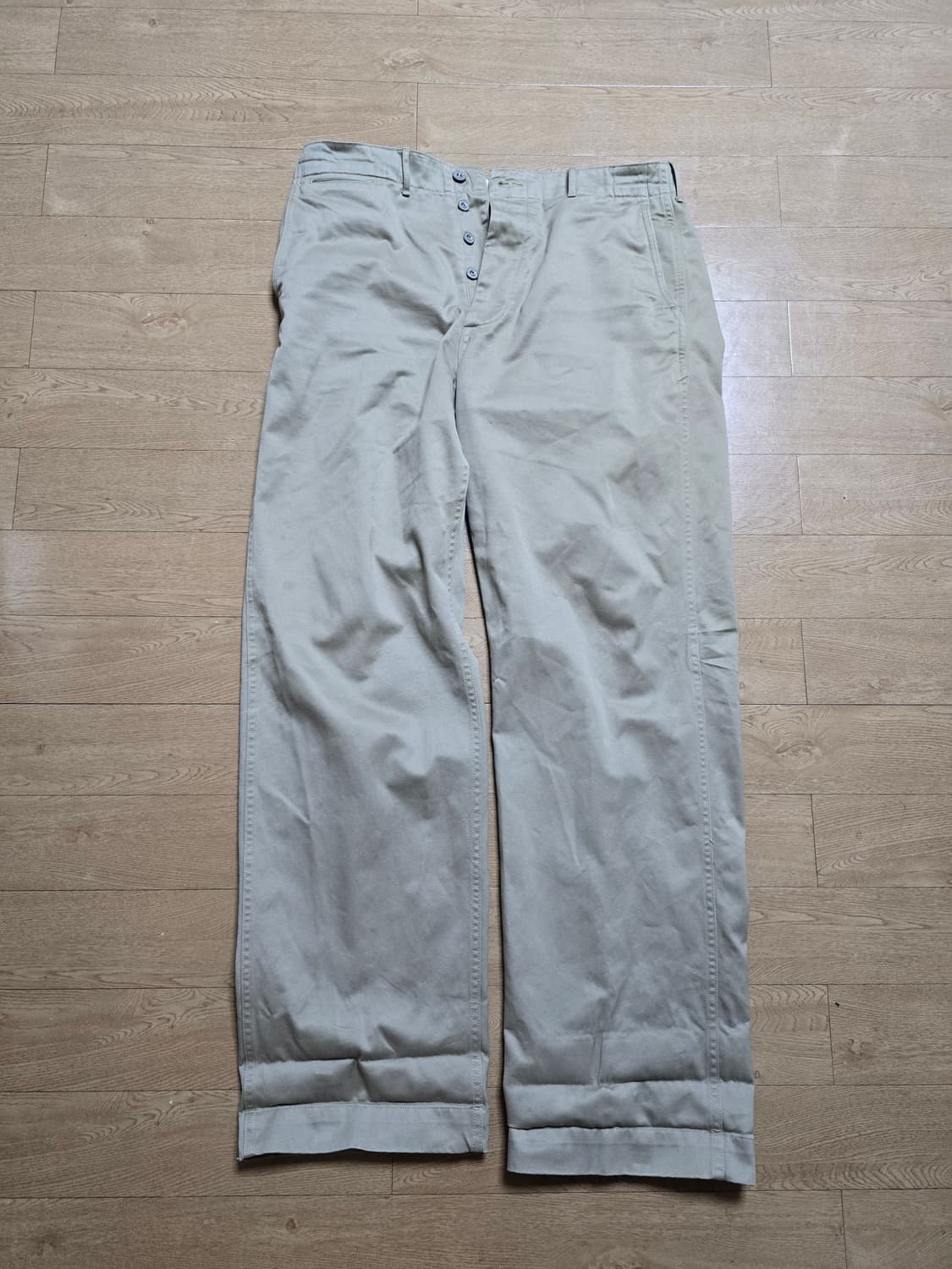 버즈릭슨 1942 치노팬츠 36×35 카키컬러 기장미수선상태입니다. 버즈릭슨치노는 허리가 작게 나와서 34입으시는분이 입으면 딱 좋습니다. 맨밑 단추 한개 떨어졌습니다. 감안해서 가격 올립니다. 실측 허리 45 허벅지 38 밑단26 인심88 기장116