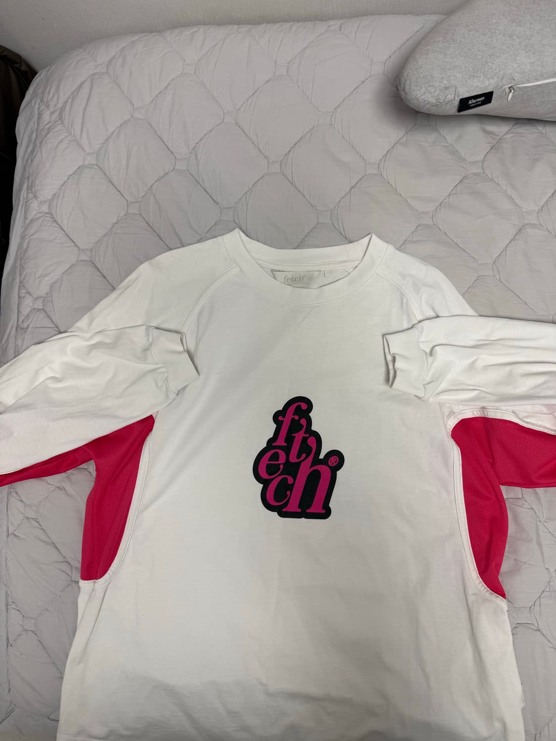 페치에서 스테디하게 나오는 레이싱 라인 롱슬리브 입니다. 보시는 바와 같이 암핏라인 메쉬 소재로 되어 있는데 핑크색입니다. 상태는 막상 사두고 5번도 입지 않았기에 매우 좋습니다. 그러나 목 부분 아주 자세히 보면 보이는 미세한 이염이 존재합니다. (보관상 생긴 이염) 사이즈는 s이지만 아주 여유로운 핏으로 나온 제품이다 보니 타 브랜드 L 사이즈에 가깝게 생각하시면 될 것 같아요.