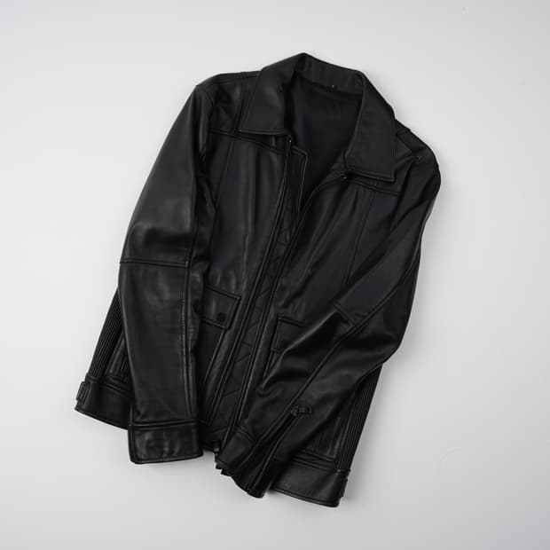 Material : Vegetable Lambskin Leather (Wahsed) Origin : Italy Color : Black Slim Fit Grade : [N] Size : 100 어깨 43 가슴 51 소매 62 총장 59 차이나카라넥 안에 와이어가 내장되어 있습니다 베지터블 램스킨에 워싱을 한 제품으로 실착시 처음엔 약간 작게 느끼실 수 있습니다 가죽제품 특성상 꼭 실측확인 후 구매 부탁드립니다. 레더 아카이브는 공장 창고에 보관되어 온 데드스탁(미착용 새 상품)을 위주로 소개해 드리며, 제품 개발 단계의 샘플이나 시착 제품도 함께 취급하고 있습니다. 제작자가 직접 검수하고 유통 마진 없이 발송하므로 가격은 그만큼 낮췄습니다. 다만 제품의 보관 기간에 따라 컨디션 차이가 있을 수 있으므로, 가죽 상태와 사이즈 확인 후 신중한 구매 부탁드립니다. [N] 보관 상태가 완벽한 미착용 새 상품 [A] 장기 보관으로 인한 가죽의 건조함이나 미세한 눌림 자국 육안으로 크게 티가 나지 않으며, 실착 시 전혀 지장이 없는 수준 [B] 가죽 표면의 약간의 갈라짐(크랙)이나 색바램(에이징)이 진행된 상태 [U] 단순 반품 및 시착 제품. 소매나 등에 자연스러운 주름이 잡혀 있으나 컨디셔닝을 마친 상태 [C] 가죽 찢김, 깊은 크랙 등의 결함이 있는 상태 전 제품 서울 중랑구 망우동 작업실에서 방문 시착 가능합니다. 방문 전 미리 연락 주시면 상세 위치 안내 드리겠습니다.