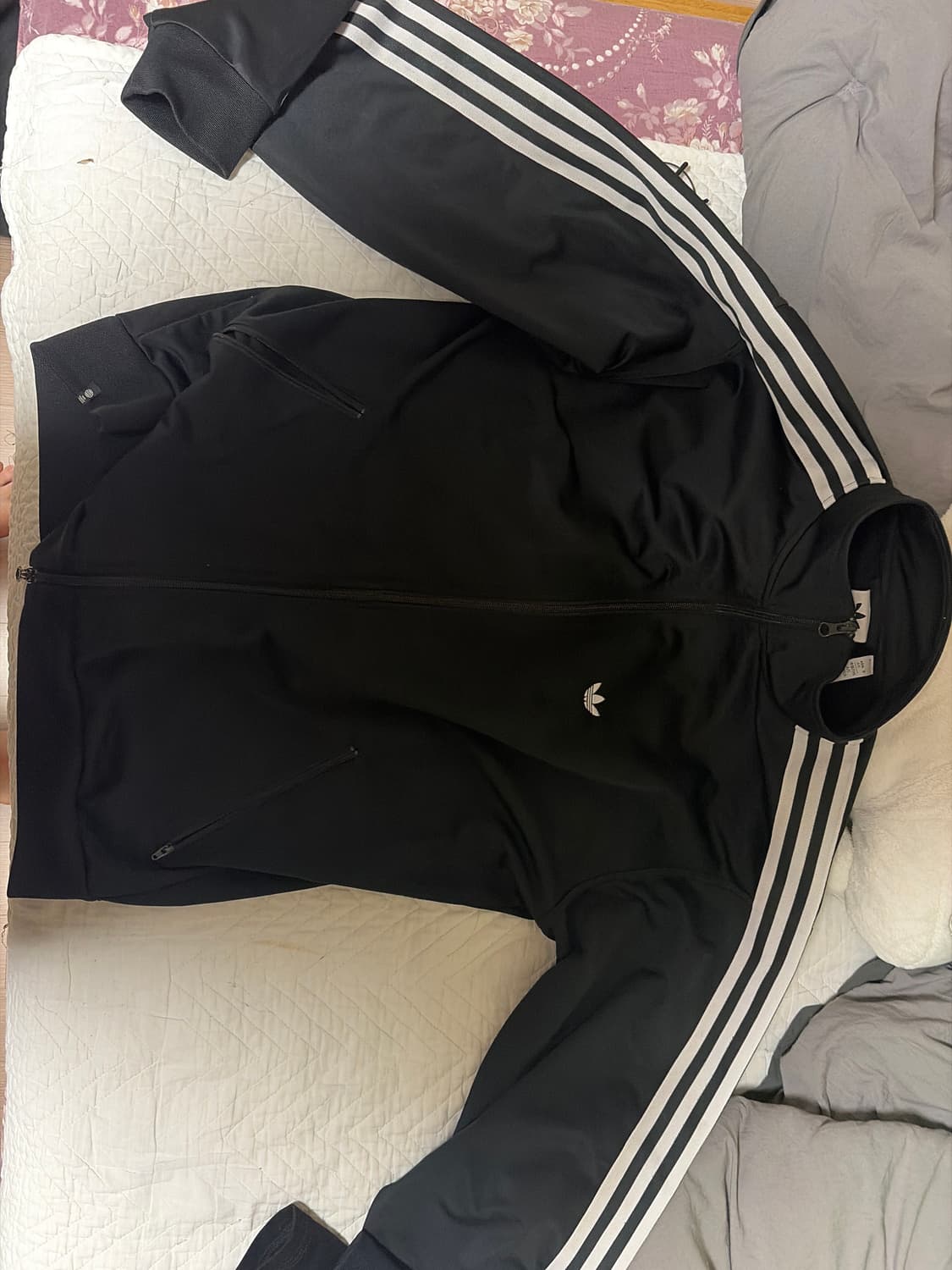 아디다스 BB 트랙탑입니다 한국 기준으로 S사이즈구요 크게 나와서 170초중반 분들이 오버사이즈로 입기 좋습니다 크림에서 30만원 정도에 팔리는 제품입니다 하자는 뒤에 보풀과 지퍼 색깔 살짝 까인 정도에요 사이즈땜에 자주 안 입어서 그 외 하자는 없습니다