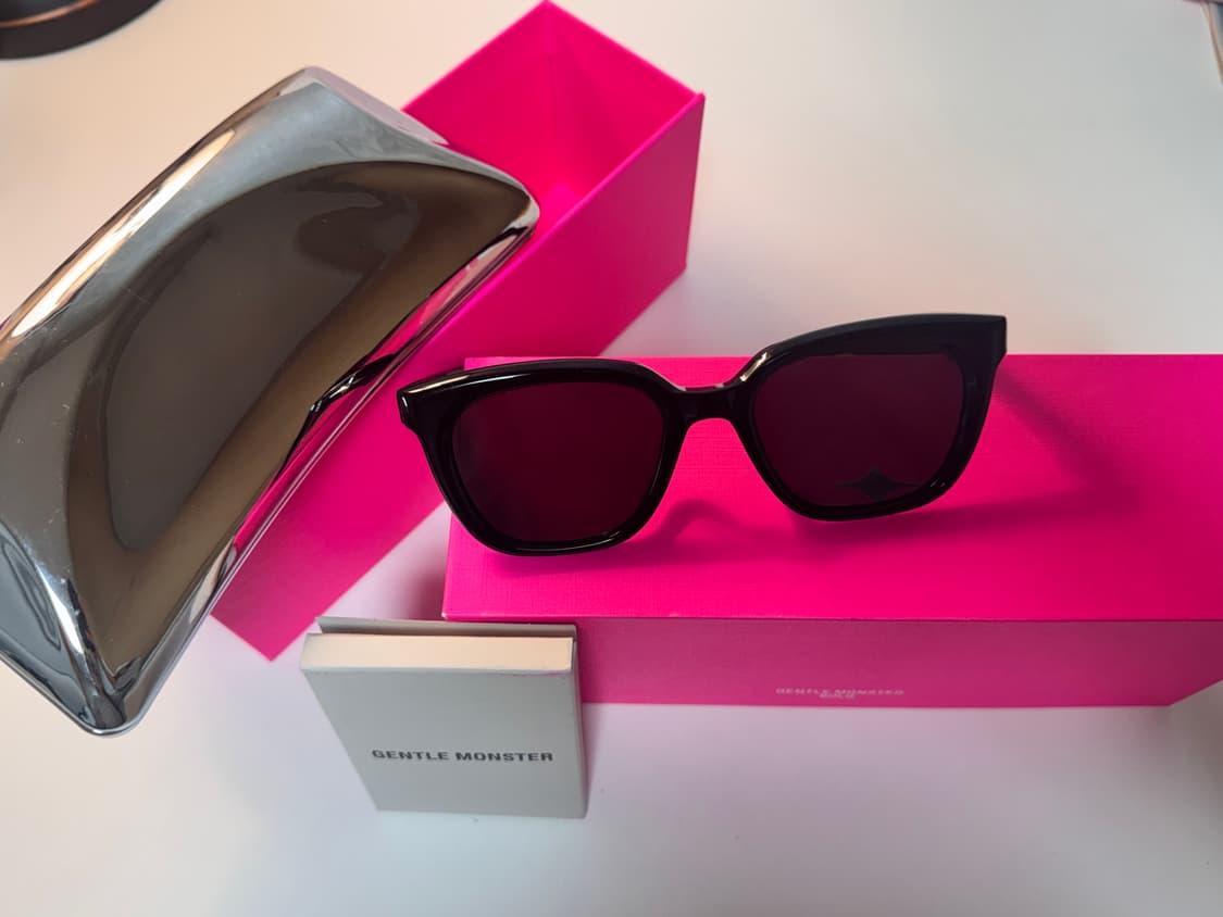 젠틀몬스터 빌리01 선글라스입니다 매장에서 32만원인가 35인가 주고 샀어요 보증서 박스 케이스 전부 있습니다 실제로 밖에서는 한번도 안썻구요 집에서 사진찍을때 썻는대 세번 미만으로 썼던거 같아요 그래서 잔기스 전혀 없습니다 급전필요해서 내놓아요 궁금하신건 챗주세용 택포입니다
