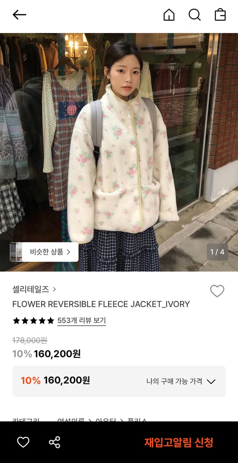 셀리테일즈 플라워 리버시블 자켓 판매합니다 제가 키가 150 초반이라… 좀 큰것같아서 판매합니다