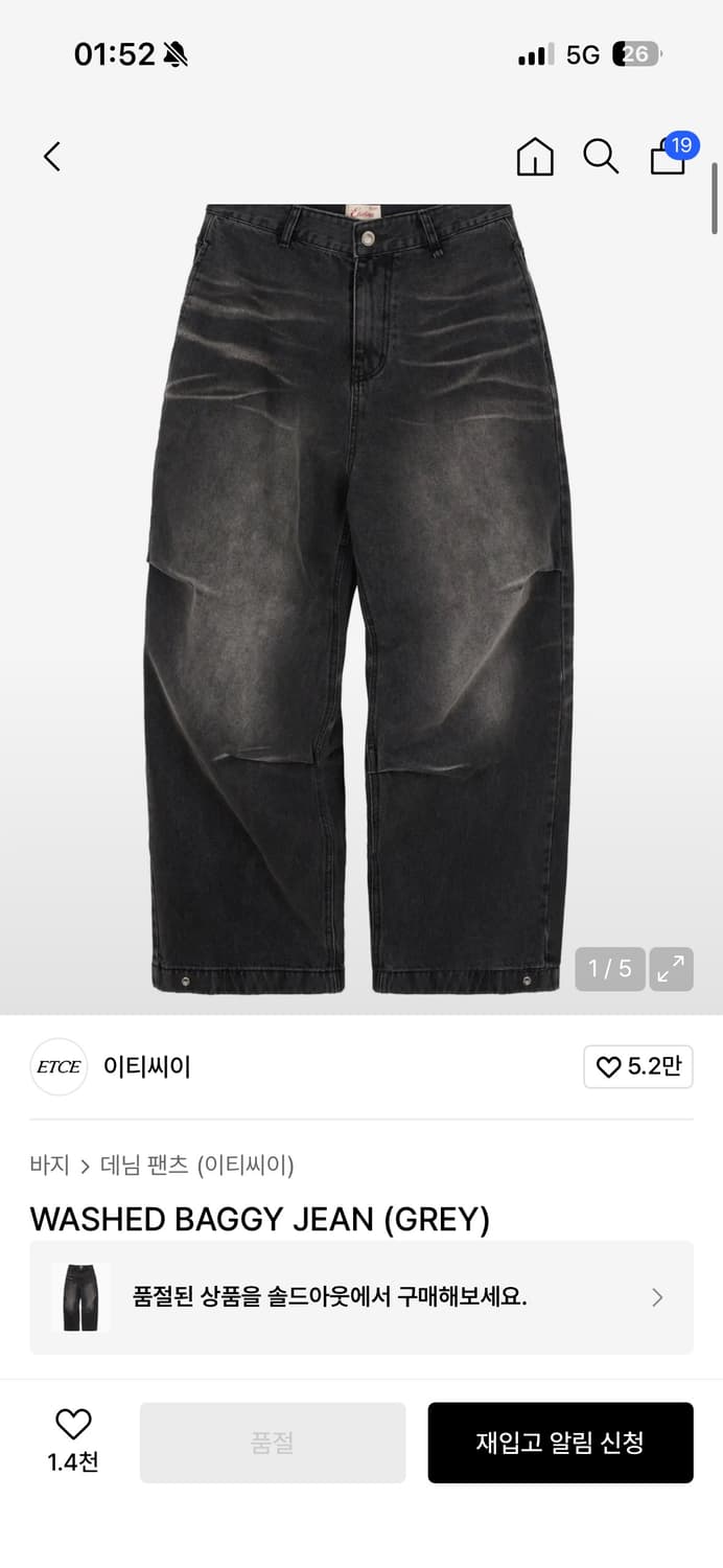 이티씨이 배기진 WASHED BAGGY JEAN (GREY)