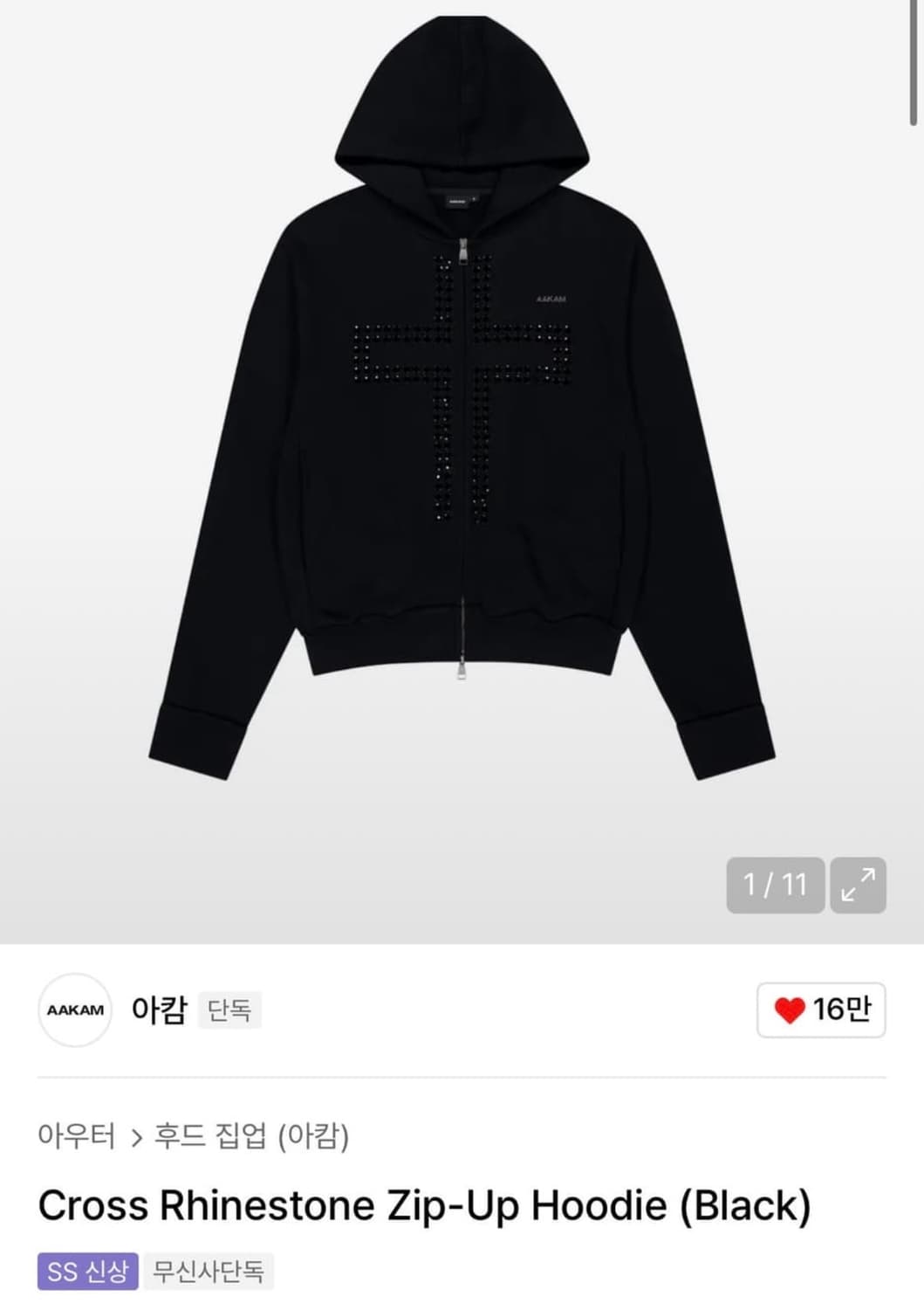 아캄 Cross Rhinestone Zip-Up Hoodie 후드집업