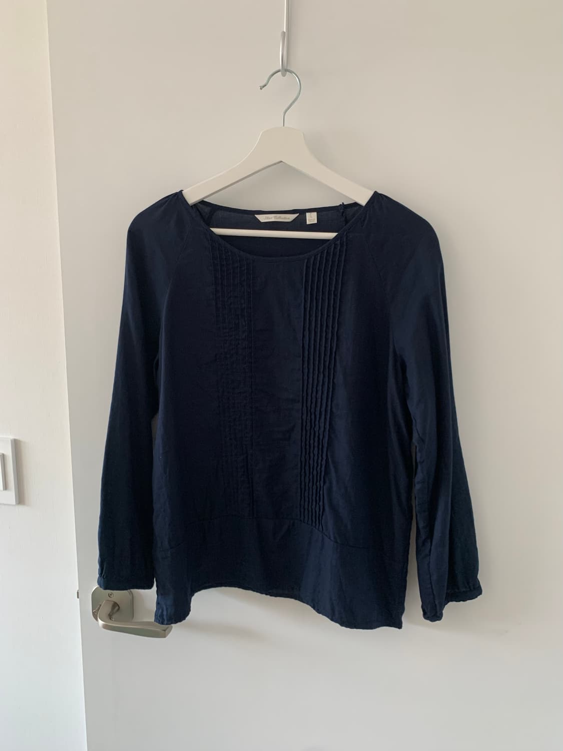 * condition A * size(cm) 총장 60 / 가슴단면 48 / 팔길이 56 * 면 75% 리오넨 25% ◛⁺⑅ 얇은 여름 네이비 블라우스는 저희가 자주 보여드리는 제품 중 하나죠😌 컬러 매치도 쉬우면서 뭔가 좀 더 특별하고 땀 흘리는 여름에 신경도 덜 쓰여서 여러모로 좋아해요🌀 요 제품처럼 핏까지 귀엽다면 정말 안사랑할 수가 없다! ! !🤍🤍🤍