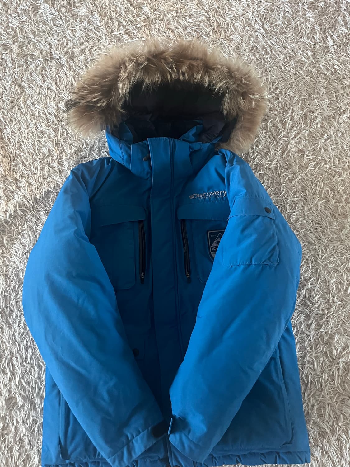 디스커버리 남성 블루 패딩 점퍼입니다. 후드에 퍼 달려있어 한겨울에도 따뜻하게 입을 수 있습니다. 캐주얼하게 코디하기도 좋은 스타일입니다. 문의 없으시면 바로 안전결제해주시면 됩니다!