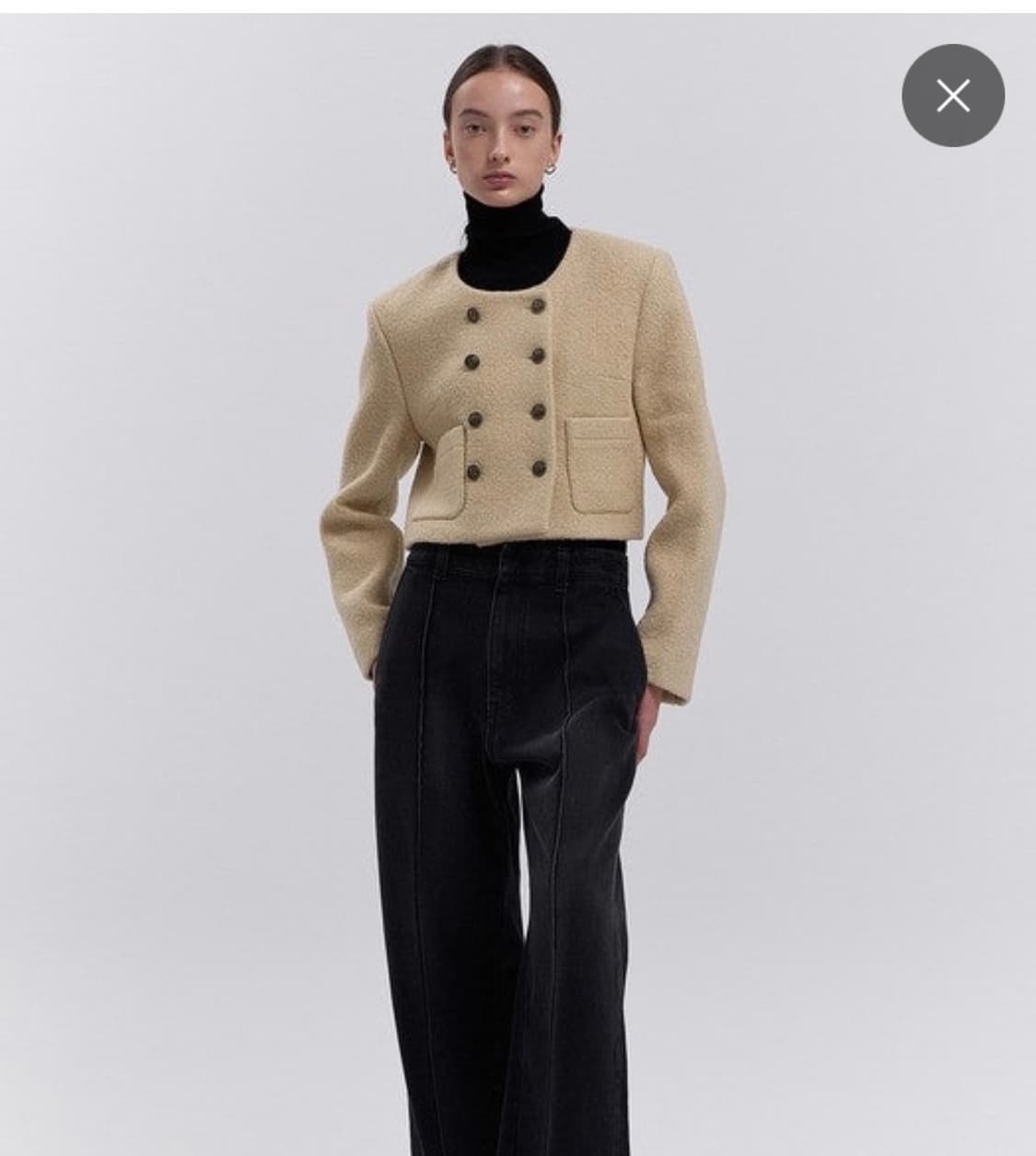 아이보리 색상의 블러썸에이치컴퍼니 트위드 자켓입니다. 더블 버튼 디테일이 고급스럽고, 깔끔한 디자인이라 어떤 옷에도 잘 어울립니다. 격식있는 자리에도 잘 어울리고, 캐주얼하게 입어도 예뻐요. 문의 없으시면 바로 안전결제해주시면 됩니다! 1회착용