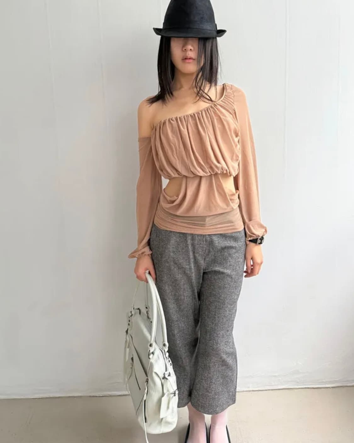 루즈슬립오버 Cutout long sleeved T *Dark Gray