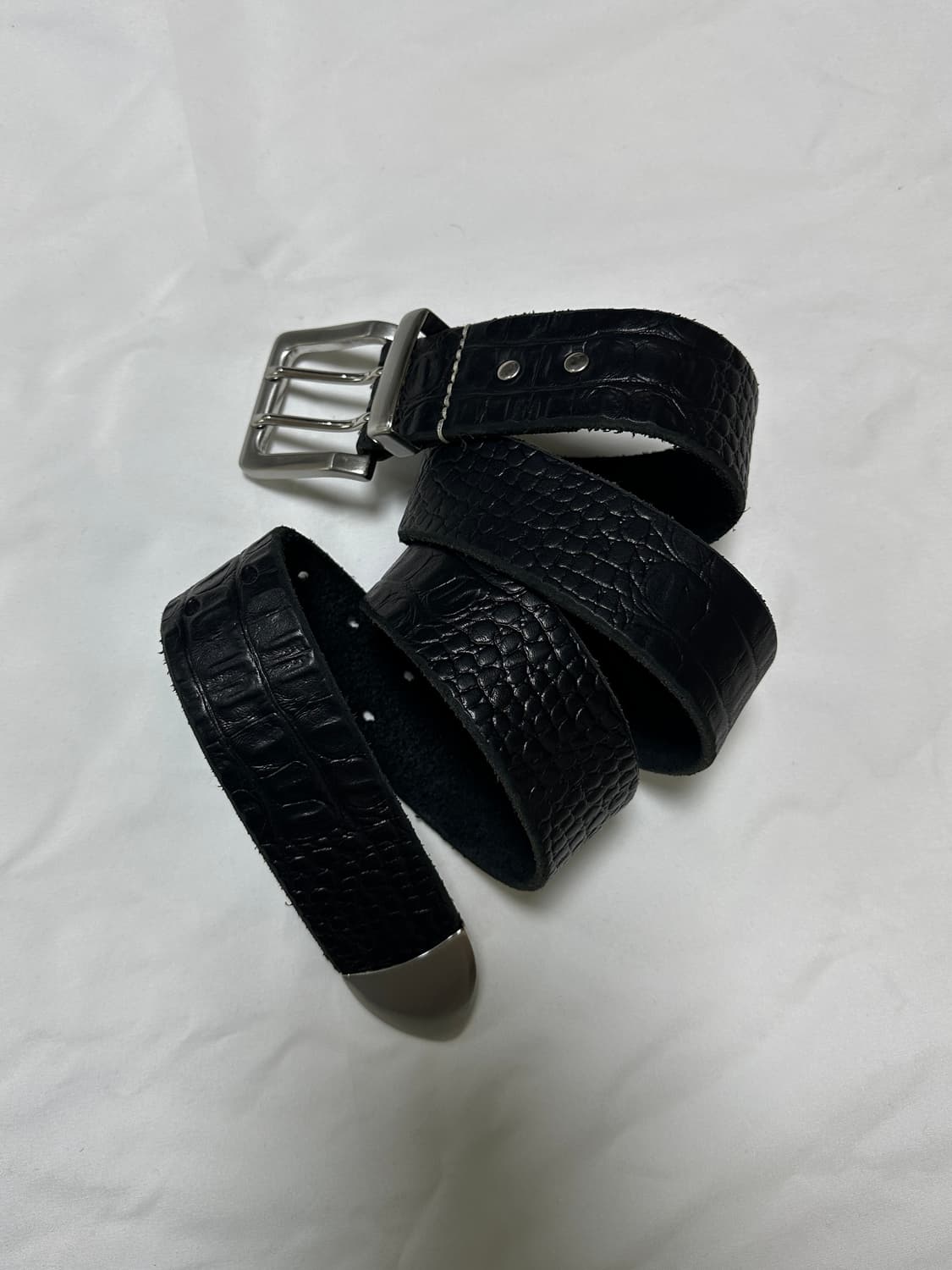 • Our Legacy 실버 캡 크로커 이펙트 레더벨트 90