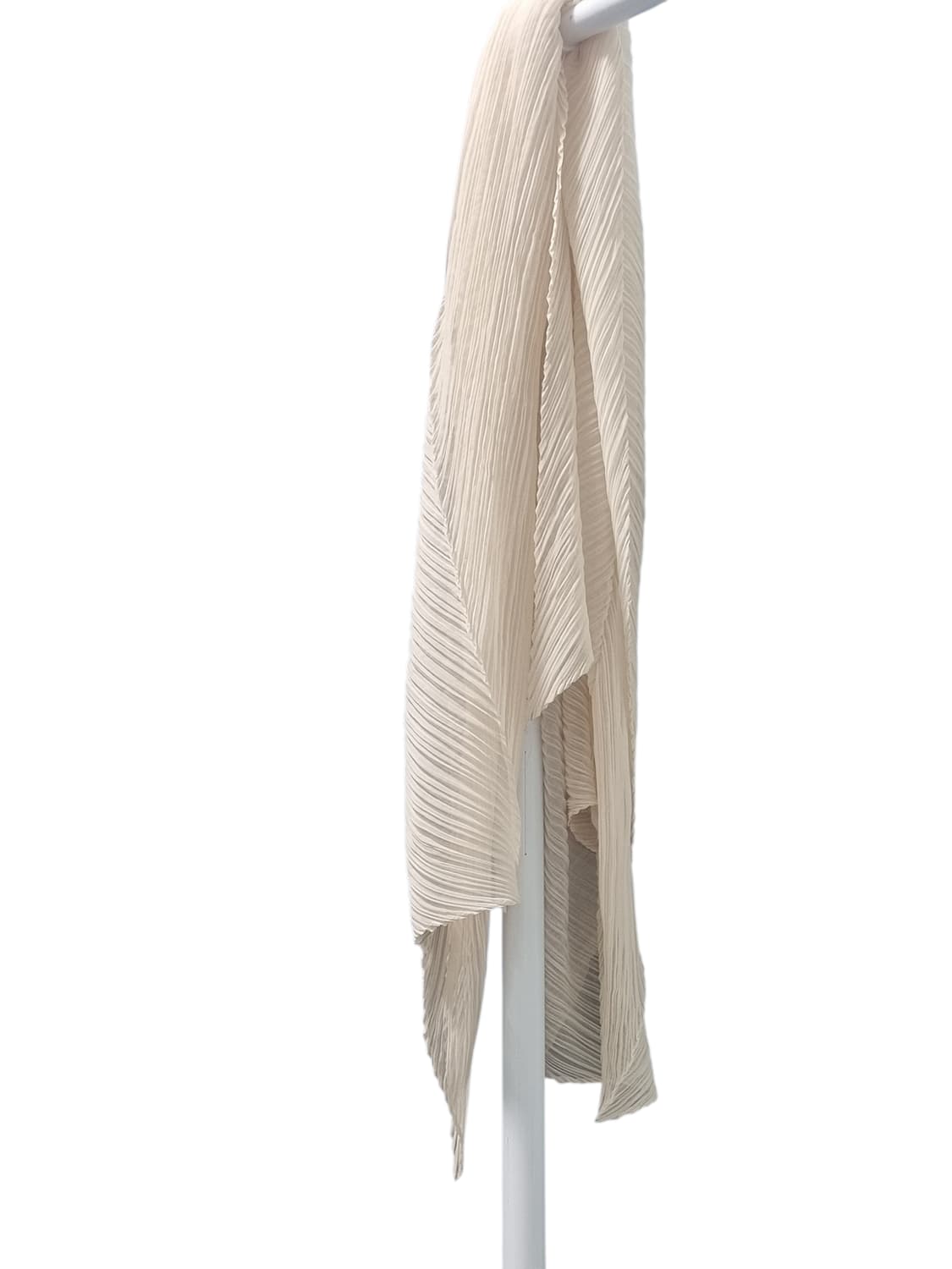 플리츠플리즈 아이보리 스카프입니다. 은은한 아이보리 색상이라 어느 옷에나 잘 어울립니다. 가볍고 부드러운 소재라 착용감도 아주 좋습니다. 오염. 하자 없이 컨디션 매우 좋습니다! 총장 약 170