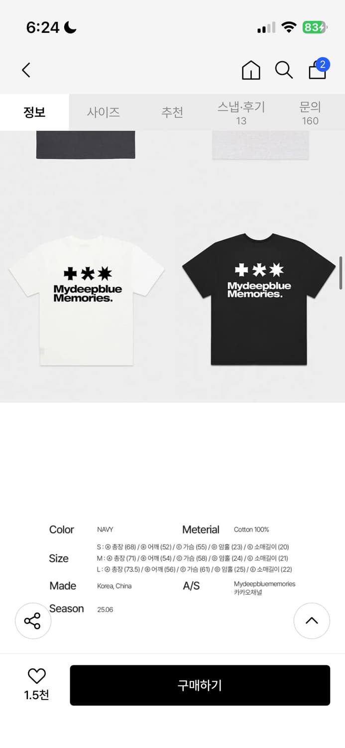 마이딥블루메모리즈 반팔티