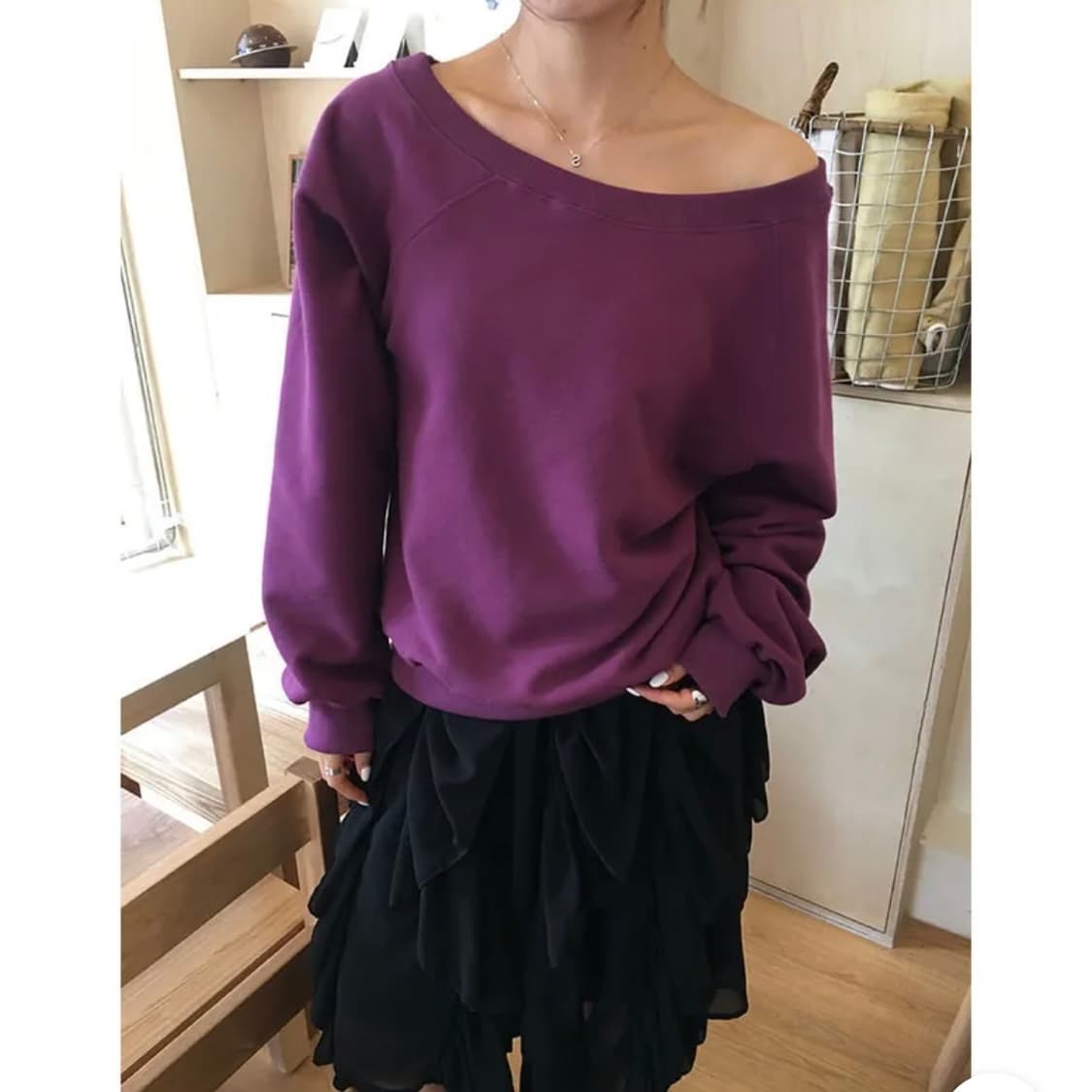 스위피 원오프숄더 맨투맨 퍼플