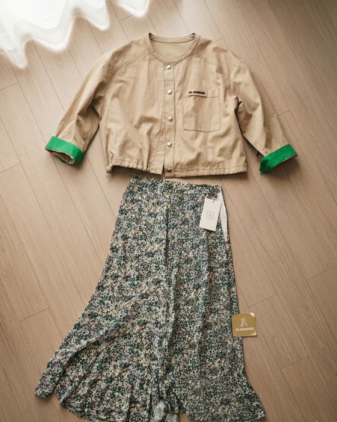 롱 플라워 스커트 패턴: 잔잔하고 화사한 그린 계열 플라워 패턴 특징: 살랑살랑거리는 소재로 걸을 때 실루엣이 아주 여성스럽습니다. 롱한 기장감으로 체형 커버에 좋고 활동하기 편해요. 실측사이즈 허단32 총장75
