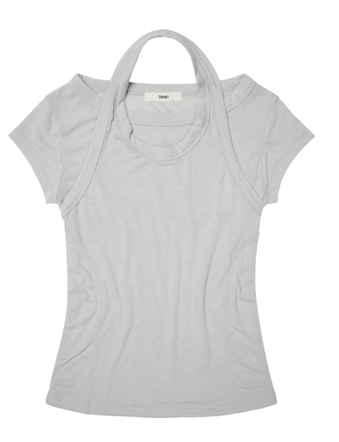 IN N OUT LAYER HALTER SHORT SLEEVE TOP IN LIGHT GREY 텍달린 새상품이에요! https://www.musinsa.com/products/5273553