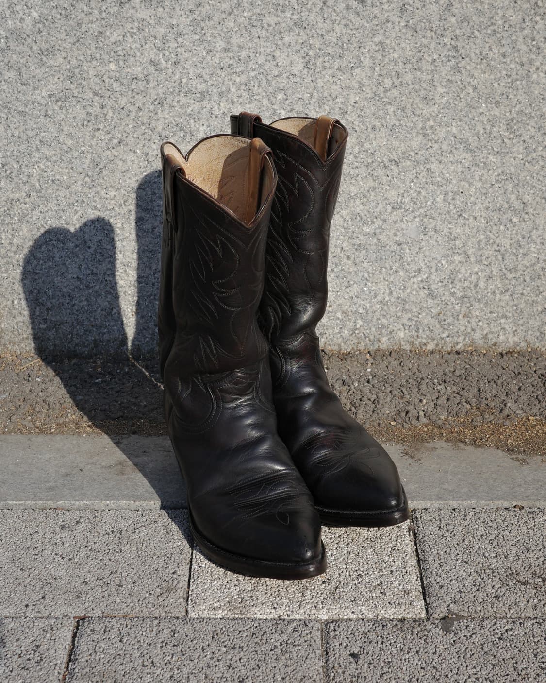 Detail 1990's Justin Boots Horn Stitch Brown Patina Western Boots 표기 사이즈 : 9 EE (cm) 길이29.5 발볼10 굽4.5 샤프트높이29 ✑ 1990's ✑ Justin Boots ✑ EE 발볼사이즈로 여유 ✑ 스트레이트 샤프트로 좋은 핏감 ✑ 은은하게 올라오는 체리색 파티나 ✑ 카멜레온펀치는 아웃솔이 아닌 바디 길이를 측정합니다.