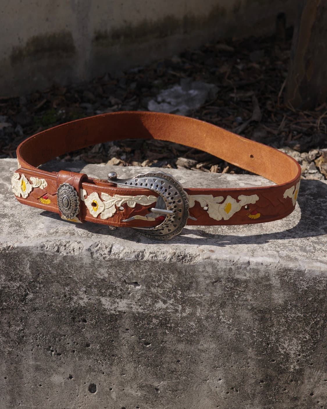 Vintage Hand Painted Tooled Western Belt ( CM ) 길이107 바디102 너비3.5 ✑ 멕시코제 ✑ 핸드 페인팅 ✑ 콘초 루프