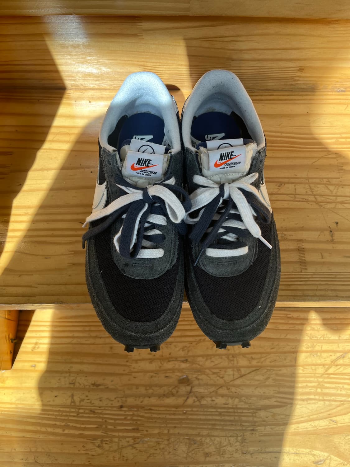 블랙 색상 나이키 사카이 스니커즈입니다. 독특한 디자인으로 어떤 스타일에도 잘 어울립니다. 사용감은 있지만, 전체적으로 깔끔하게 관리된 제품입니다. 문의 없으시면 바로 안전결제해주시면 됩니다! 박스없습니다